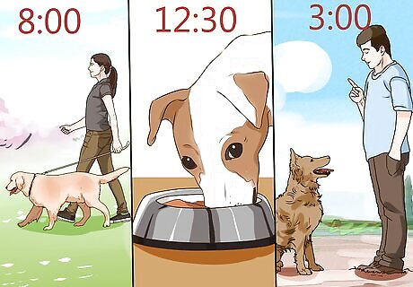 Devise a plan. Taking care of a dog requires a lot of time. You will need to feed, walk/exercise, groom, train, and take your dog outside for potty breaks each day. Therefore, devise a plan that outlines what time you will wake up each morning to feed your dog when you will take your dog out for walks, and how often you will bathe and groom your dog. Also, consider how you will train your dog. Will you enroll it in an obedience class or attempt to train it yourself? Dogs need guidance and can misbehave if you don't train and lead them. These are important considerations that, if planned out ahead of time, will increase the likelihood of your parents agreeing to let you have a dog.