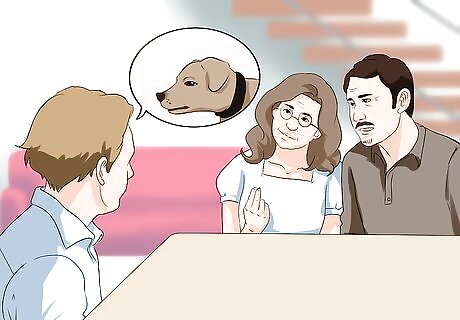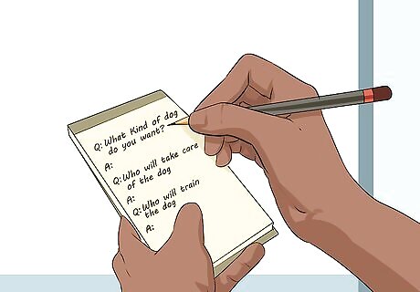 Prepare for their questions. When you present the idea that you want a dog, your parents will ask a lot of questions. However, by having your answers prepared beforehand, you can make a more persuasive case. Being prepared for their questions may also be another way to show your parents that you are ready to take on the responsibility of having a dog. Questions your parents might ask are: “What kind of dog do you want?” and “Is that breed the right breed for our family’s lifestyle?” “Who will take care of the dog?” “What are the costs of having a dog?” and “Who will pay for these costs?” “Will a dog distract you from your school work and other responsibilities?” “What will happen to the dog if your grades begin to slip, or if you stop taking care of it?” “Who will train the dog?”