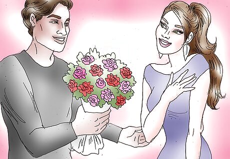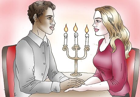 Act like it's your first date again. Be the perfect gentleman. Pick her up. Bring flowers. Compliment her. Flirt with her. Pay for the meal. Hang on her every word. Impress her with your confidence. Show her you at your best, and let her fall in love with you all over again. Even if the date doesn't go perfectly, the effort alone will show her how much you care. Take cues from her about how to end the date. If she's not ready to go straight back into a relationship, be understanding. Drop her off and let her know you want to take her out again. If there's an opportunity for a kiss, go for it. And if she wants to sleep with you, it'll reignite your passion and intimacy almost immediately. Take a deep breath and stay in control. Make her laugh. The best way to have a good date is to be funny. If you have old inside jokes, this is the perfect time to cash in on them. Be totally engaged in her. Don't check your phone or act absent-minded. Listen to her carefully and act like it's just the two of you.