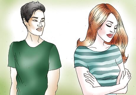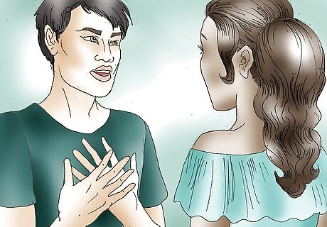 Give her time alone. This is the hardest part. You'll reconnect with her soon enough, but for now you need to spend time apart. Regardless of how the relationship ended, you both probably said things you didn't mean. The wound is fresh, and it needs time to heal. Cut off communication and give her time to reflect on the breakup. Hopefully you'll both move past whatever ended the relationship and remember all the good times you had together. After enough time, she'll start to miss you. The amount of time you need to spend apart depends on the relationship and the nature of the breakup. If your relationship was serious and your breakup was nasty, she'll need more time. If you just started dating and it was a silly fight, she won't need much time at all. Don't text her or message her. If she reaches out to you, don't ignore her, but play it safe. This is not the time for big romantic gestures. Avoid places you know she frequents. Steer clear of her favorite coffee shop and the gym she goes to. If you happen to see her in person, be polite. Say hello or wave, but that's it. If you have to see her regularly, like for class, acknowledge but don't engage her. Talk to your friends instead. Let her see you having a good time.