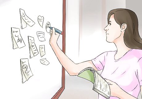 Test yourself on information repeatedly. Repetition is key to memorization. Test yourself over and over again on relevant material if you want to get a good grade. Review material you studies in a previous session before a new study session. Re-read important passages in text books. If practice tests and quizzes are provided, take them. Use flashcards, which you can create by hand or with online programs, to test yourself on things like dates, vocabulary, and more.