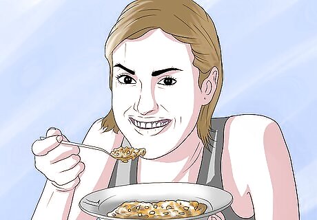 Eat breakfast. If you're feeling hungry during a test, this can be distracting. You also might have trouble concentrating due to lack of food. Eat something with complex carbohydrates and protein to keep you feeling powered up all morning long. A bowl of oatmeal with Greek yogurt and fruit is a great breakfast. Scrambled eggs and whole-wheat toast is another good option.