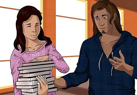 Play the damsel in distress. If you're feeling mischievous, try playing the damsel in distress. Guys can't resist helping a girl in need. Ask for help reaching something on a high shelf, or for advice on where to service your car. Then thank them and flash your most winsome smile. Works like a charm. Don't play this card too often. Ask for too many favors and his patience will soon wear thin, along with his affections. Don't play dumb. It's fine to ask for help when you need it, but don't intentionally act dumb just to have an excuse to ask. Remember: guys like smart girls, or at least the ones worth dating do.