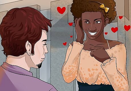 Accentuate your best features. There's no point in denying it, physical attraction is a huge factor in any potential romance. With this in mind, take care to accentuate your best features. Don't be too modest. Everybody has something they like about themselves. Play it up! Great smile? Flash those pearly whites! Bangin' curves? Use a belt to accentuate your waist. Beautiful eyes? The right eyeshadow can make the color pop! Find your best feature and work it, girl. Don't go overboard. A full face of make-up, uncomfortably tight clothes or vertigo-inducing heels may have the opposite of the desired effect, especially if that's not your normal look. Stick to what works for you and gives you confidence.