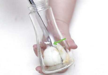 Rinse out the bottle to reuse. If you want to use this bottle for anything in the future, you will need to rinse it out. There will likely be residue from the egg stuck to the sides of the bottle. Fill the bottle with warm water and swirl it around to remove the remaining egg. Add some dish soap to really get the bottle clean.
