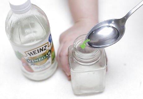 Add 3 tablespoons (44 mL) of vinegar to the bottle. Pour the vinegar into the bottle, taking care to avoid the egg itself. Exact measurements aren’t necessary, but three tablespoons should be more than enough. Keep the bottle upright during this step.