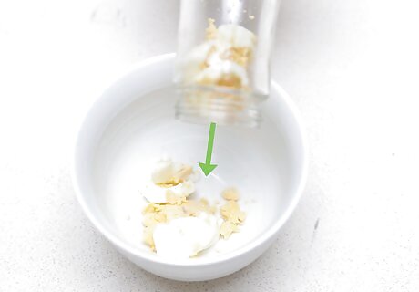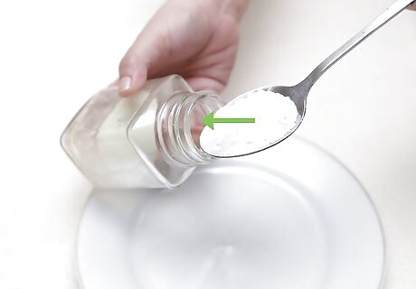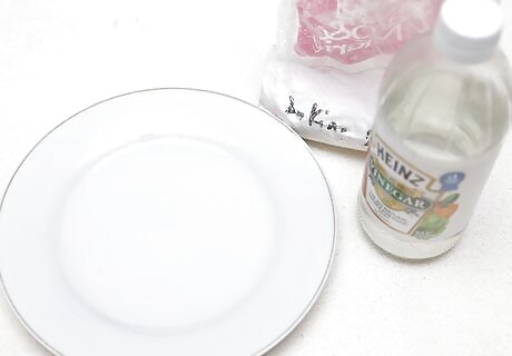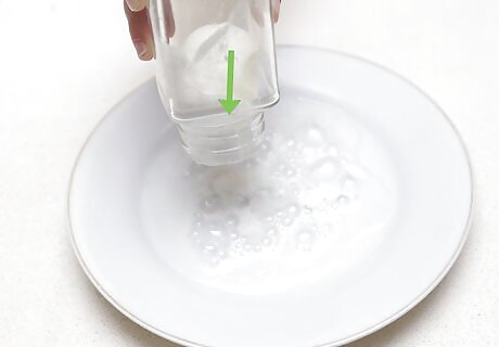 Gather the necessary materials. To get the egg out of the bottle using this method, you will need baking soda, vinegar, and a plate. This method uses a chemical reaction to increase the air pressure inside the bottle. The increased air pressure will push the egg out of the bottle. You need about 3 tablespoons (44 mL) of vinegar and 2 tablespoons (14.4 g) of baking soda for this. The plate is just used to catch the egg. You can also do this over a sink if you’d prefer.