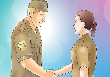 Join a Junior ROTC unit while in high school. This will help familiarize you with military concepts such as wearing a military uniform and conducting Drill and Ceremonies (military marching and movements) before entering a college ROTC program.