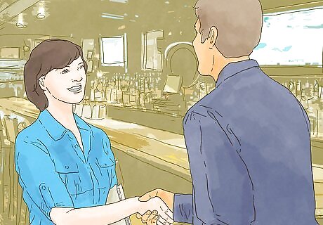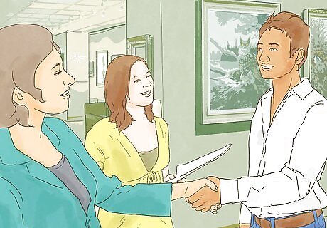 Network with others. Be friendly and outgoing with your classmates and instructors at drama school, the directors and producers of your film or theater productions, and the agents who help you land roles. Charm industry professionals by laughing at their jokes, and accept as many invitations to social gatherings as possible. Make recommendations for other actors or industry professionals who you respect. They might do the same for you when they have the chance. When you meet other actors or people in film, television, or theater, don’t ask immediately for help landing roles. Develop a relationship first and let them get to know you. Network with both aspiring and established actors. You can learn from both types, and either could extend opportunities to you.
