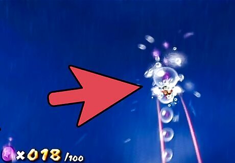 Fly around the Comet Observatory. Once you rescued the Red Power Star, you have the ability to have a power up in the Comet Observatory. Fly around the Comet Observatory by jumping, then spinning in mid-air. You can go from the Observatory to the gate. You can even long jump, backward somersault or do a triple/multiple jumps. Don't fly from the observatory to the trial planet, use a Trial Launch Star, or touch any enemy or hazard.