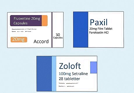 Ask your physician about antidepressants. One possible option is to take a serotonin reuptake inhibitor antidepressant, like fluoxetine (Prozac), paroxetine (Paxil, Pexeva), or sertraline (Zoloft). These work by changing the levels of the hormone serotonin in your brain, boosting your mood, relieving mild to severe depression, and decreasing the frequency of panic attacks. Antidepressants are generally safe and cause fewer side effects than other types of antidepressants. Keep in mind that antidepressants can take several weeks before they begin to work properly. You have to take them continuously, not just during an isolated attack.