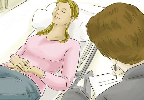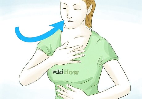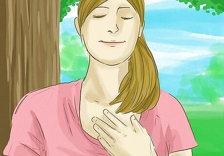 Breathe deeply. Deep breathing is a practical way to get anxiety under control. Plus, you can do this exercise virtually anywhere, even during an active phone call—just be sure not to breathe directly into the speaker. Try pulling the phone away from your mouth for a few deep breaths or mute the line to breathe while the other person is talking. Deep breathing involves pulling in air through your nose for several counts (try four). Then, hold the breath for about seven counts. Finally, exhale the breath from your mouth for about eight counts. Repeat the entire cycle for a few minutes until you start to feel calmer. If you’re on an active call, two to three cycles of deep breathing can help you quickly collect yourself and decrease anxiety.