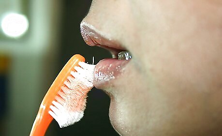 Use the toothbrush to work the petroleum jelly into your lips. Do this by gently moving the toothbrush in circular motions all along your lips. Do this for about a minute. It is a little tedious, but you will love the results afterwards.
