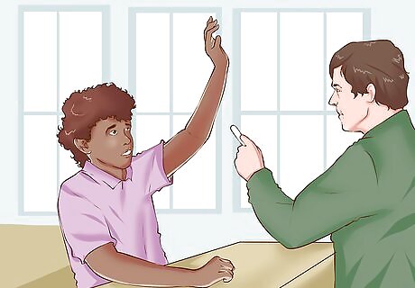 Behave when you are at school. This means following your teacher’s instructions, treating your classmates with respect, and not distracting yourself with cell phones or other books. When you misbehave, you will get in trouble and need to serve some punishment. It is much harder to learn and keep up with work if you are in a time-out, having to visit the principal, or just not paying attention. Getting in trouble for misbehaving at school can also hurt your grades. Even if you get all the answers right on your homework and tests, your grade will still not be an A if your teacher lowers your grade because you didn’t pay attention or follow the rules. Your parents will probably know the school’s policies for appropriate behavior, including the dress code and appropriate language for reference. If you are unsure about something, talk to them to make sure you are following the rules.
