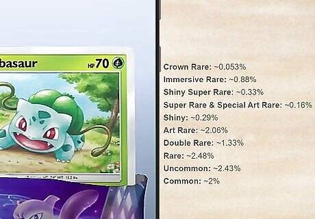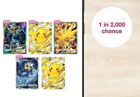 Spend pack points to buy a card you want. Each time you open a booster, you get 5 pack points for that expansion. Pack points let you buy individual cards so you don’t have to find them randomly in packs. Save up your pack points so you can buy the rare cards you’re missing. Crown Rare: 2,500 pack points Immersive Rare: 1,500 pack points Shiny Super Rare: 1,350 pack points Super Rare & Special Art Rare: 1,250 pack points Shiny: 1,000 pack points Art Rare: 400 pack points Double Rare: 500 pack points