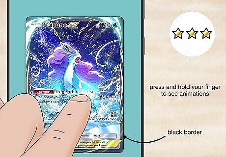 Immersive Rare Immersive Rare cards have alternate art and black borders around the edges. When you press and hold your finger on an Immersive Rare card, you get transported into the world of the card to see new backgrounds and animations. There are only a couple of Immersive Rare cards in each set, so they’re more difficult to find. Rarity Symbol: 3 stars Example Cards: Suicune EX, Eevee EX, Buzzwole EX, Celebi EX, Guzma