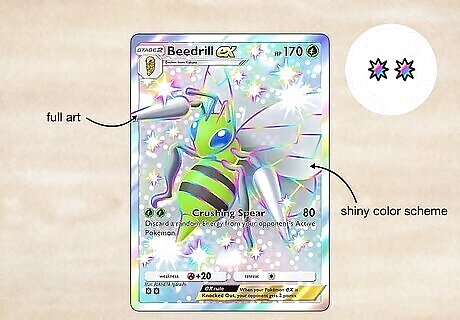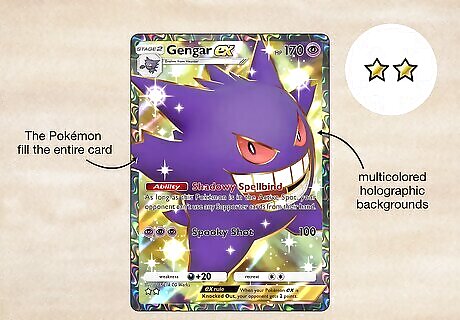 Super Rare & Special Art Rare The Pokémon and Supporters on Super Rares fill the entire card and usually have multicolored holographic backgrounds. Special Art Rares are the same rarity, but they feature alternate art scenes and a rainbow border, so they look truly unique. Rarity Symbol: 2 stars Example Cards: Gengar EX, Machamp EX, Giovanni, Umbreon EX, Entei EX