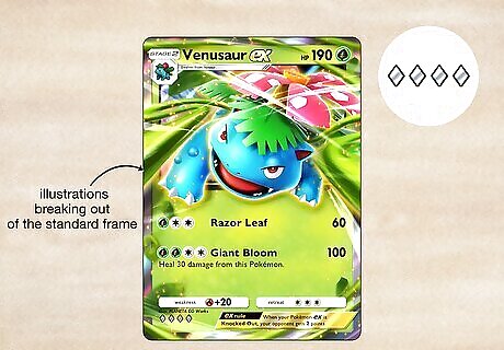 Double Rare Double Rare cards tend to be EX Pokémon that have illustrations breaking out of the standard frame. Even though these cards are more common than others, there is a smaller chance you’ll pull them from a normal pack. Rarity Symbol: 4 diamonds Example Cards: Venusaur EX, Zapdos EX, Wigglytuff EX, Jumpluff EX, Raikou EX