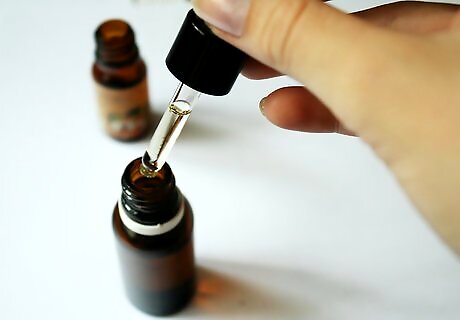 Use essential oils to thicken your hair. Chamomile, lavender, rosemary, thyme, geranium, cedarwood, almond oil, coconut oil, Indian gooseberry oil and many more, help thicken hair follicles. Apply 10 to 20 drops of your chosen oil to your scalp, and massage the oil in with your fingers. Use you fingers to rub the oil down to the tips of your hair. You could also mix 3 to 5 drops of essential oil into your shampoo or conditioner when washing your hair. Deep condition your hair by adding five to 10 drops of essential oil to 3 to 4 ounces of castor oil, olive oil, jojoba oil or sunflower oil. Apply the oil to your hair, taking care to cover each strand. Wrap your hair in a towel and let the oil sit for 30 minutes, then shampoo and condition as normal. Not just any oil will do. Research into hair thickening oils published in the Journal of Cosmetic Science shows some, like coconut oil, penetrate better than others.