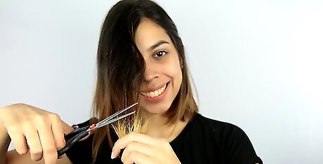 Get your hair cut. Cutting off dry, dead ends adds new life to hair, making it appear thicker. Short blunt cuts, such as bobs, make hair look fuller.