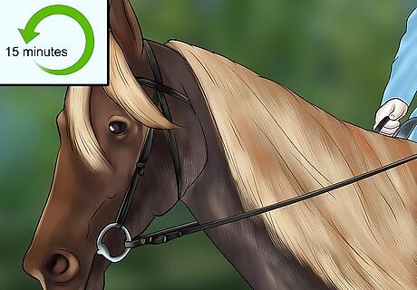 Keep sessions short. Depending on the age of a horse, training should only be done for about half an hour at a time. Think about your own learning ability. Most people retain information delivered in smaller sections, and horses do too. Additionally, the bit will likely feel uncomfortable to your horse at first, so it’s best to limit the amount of time with the bit in the beginning. The bulk of your thirty minute session should be a simple warmup. Younger horses may do better training for fifteen to twenty minutes at a time. Better trained horses may be able to handle larger periods of training, especially if you extend the warmup.