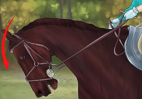 Teach the half halt. There is a “go to” command for almost any skill in horse riding. A good rider and well trained horse know these commands. The half halt is the key command for bit training. Half halt may be a bit of a misnomer. Instead, think of it as half start or half go. The half halt is how you change your horse’s direction or gait. You don’t stop, you simply shift to another activity. It’s a combination of leg pressure and pull on the rein. A horse that’s on the bit will respond quickly and naturally to half halt command to change speed or direction. A horse that is not on the bit will fight, feel unbalanced, or respond incorrectly to the change.