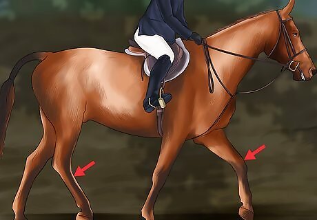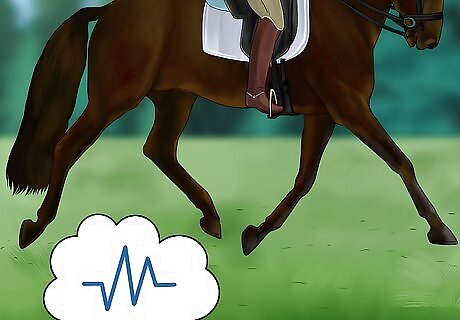 Evaluate your horse’s rhythm. Every horse is unique, but no matter what your horse’s natural rhythm is, there should be equal intervals between each step. If you notice a halting or jerking quality as your horse moves, their rhythm may be off. To determine comfortable rhythm, count your horse’s steps. As you count one, two, three, four, there should be even spacing and smooth flow between the beat of each hoof. If the horse’s rhythm is off, slow or stop it. Then, begin again, increasing speed gradually. If you play a musical instrument, counting your horse’s rhythm is very similar to how you count a measure of music. This musical experience may give you an advantage in determining when one beat is too long or too short.