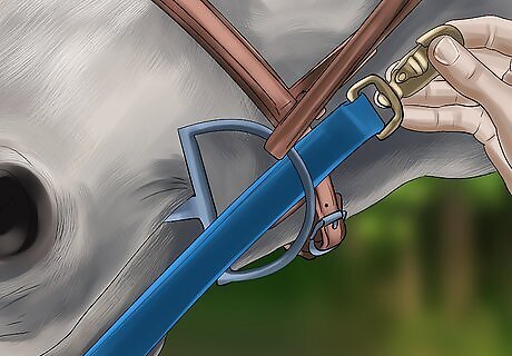 Attach the bridle. Once your horse will hold the bit in its mouth for several minutes at a time or up to a half hour, you can start some basic bridle training. You may simply want to connect the bridle and allow your horse to feel the difference in sensation, or you can attach a lead and take the horse for walk. The goal is to get your horse used to the feeling of a full bit and bridle. Again, don't leave the bit and bridle on for more than a half hour at a time.