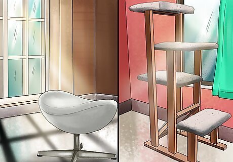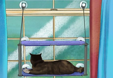 Create a window perch for your cat. Cats love to sunbathe and you can make this a lot easier by installing a window perch for your cat. These can be purchased from your local pet supply store and are installed directly onto the window. There are a variety of different perches available, some use suctions for suspension, others are attached to the wall below the window. When choosing a cat perch, take into consideration your cat's size and weight. If you have a large or heavy cat, choose a window perch that anchors directly into the wall instead of one that attaches to the window using suction cups. This version will be safer for your cat. Your cat may also sleep on the window sill if it is large enough.