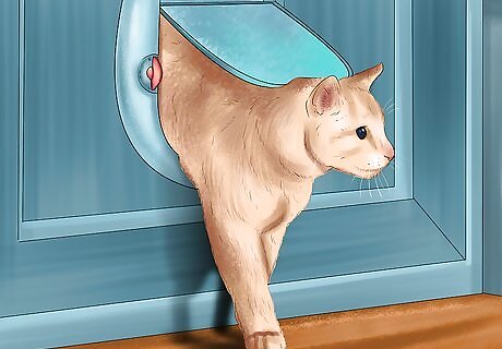 Install a cat door. If your cat spends some time outdoors, then you could install a cat door so that your cat can easily leave the house. This will allow your cat to find a space to sunbathe outside, if desired. Avoid letting your cat outside if you live in an area with heavy traffic or predators like coyotes. Before letting your cat outside, make sure that your cat is up to date on its parasite medication and vaccinations. Talk to your vet about getting the cat microchipped so that it can be returned to you if it gets lost. You could also create a “catio” or cat run in your backyard that is fully enclosed and connected to the house through a cat door. Fit your cat with a cat-safe collar. Also known as a breakaway collar, this will release the cat if it gets snagged on a branch or object so that the cat doesn't choke.