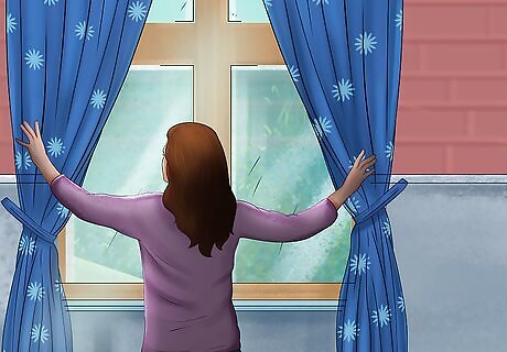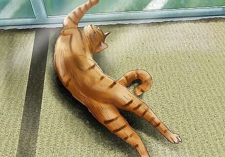 Open your window coverings. Make sure that you always open your window coverings during the day. This will help provide your cat with natural light for sunbathing. When you wake up each morning, open all of the blinds and curtains in your house. If you are worried that your cat may get a sunburn from bathing in direct light all day, you can install UV protective coating to your windows. Make sure to tie up curtain strings because cats can get tangled in them.