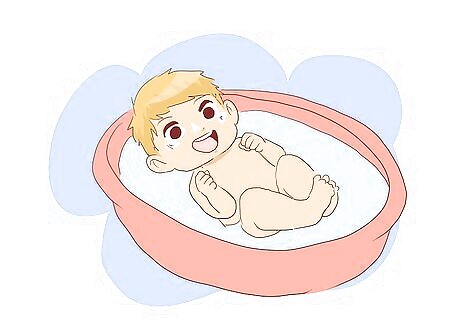 Give your baby a warm bath. Birthday parties are full of new faces and new sounds, so your infant may be overstimulated and cranky. When you get home, give your baby a warm bath, and apply lotion. Baby lotions scented with lavender are particularly relaxing and may help your baby sleep.