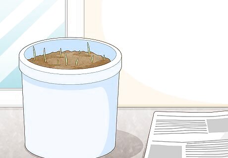 Place the pot in a warm area until the seeds germinate. Choose a spot next to a south-facing window or inside a cabinet to keep the pot. Check the soil daily to see if any seedlings have sprouted. You do not need to water the seeds while they’re germinating since the newspaper will keep moisture trapped in the soil.