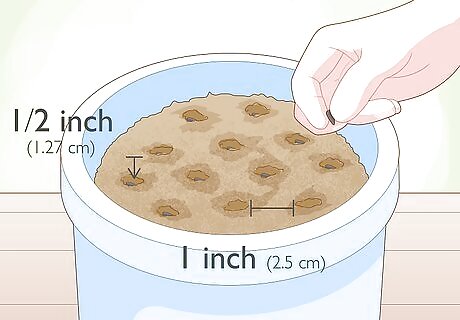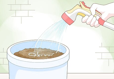 Water the seeds so the soil is damp 1 in (2.5 cm) below the surface. Use a spray bottle to water the seeds so you don’t disturb the seeds. Continue spraying the soil with water to moisten the seeds to help them grow more easily. Push your index finger into the soil up to the first knuckle and check if the soil feels wet. You can also pre-moisten the soil before you plant the seeds if you want. Try to use clean, purified water if you’re able to avoid any putting contaminants in the soil.