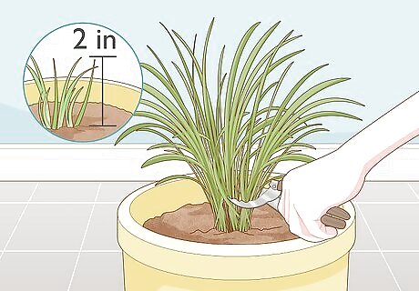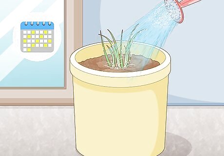 Water the chives every 2–3 days so the soil feels slightly moist. Check the soil daily by sticking your index finger in it down to the first knuckle to see if it feels wet. Use a watering can or spray bottle to water your chives so the soil 1–2 inches (2.5–5.1 cm) down feels damp to the touch. Be careful not to overwater your chives since they can develop root rot and won’t grow as well. If your chives have yellowing leaves, they may have too much water in the soil.