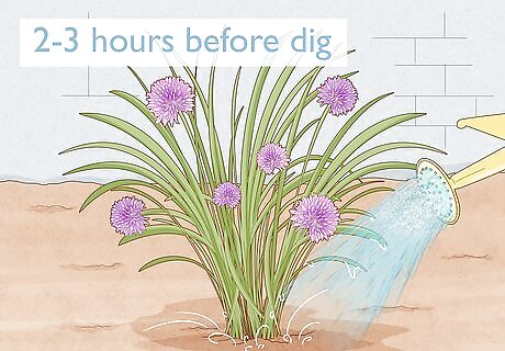Water your existing chives 2–3 hours before you dig them up. Use a watering can to moisten the soil around your chive plants so they’re easier to remove. After you water, wait at least 2–3 hours for the chives to absorb moisture and reduce the amount of stress from replanting. Choose to divide existing chives in the late summer or fall so it’s at the end of the active growing season. If you’re dividing plants that you grew in pots, then you can choose any time to take divisions.