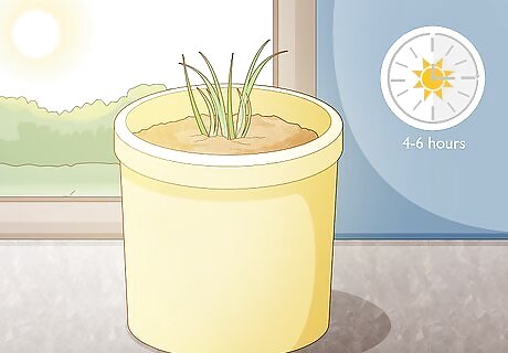 Keep the pots in an area that gets 4–6 hours of sunlight daily. Place your chives in a south-facing window if you’re able so they get enough sun throughout the day. During the winter months, your chives may slightly die back if they don’t get enough sunlight. However, they will grow back when the days get longer again. You can also keep the pots outside during the day if you want them to get more direct sunlight. You can also use grow lights if you don’t have a spot in your home that gets enough sun.