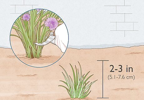 Bury the chive seeds so they’re ⁄4 in (0.64 cm) deep in the soil. Take about 10–15 seeds out of the package and set them on the soil so they’re about 1 inch (2.5 cm) apart. Use your finger to push the chive seeds into the soil so they’re ⁄4–⁄2 inch (0.64–1.27 cm) deep. You can buy chive seeds from a gardening store or online.Tip: Plant the seeds the same year that you buy them since they can quickly lose their viability.
