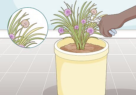 Prune leaves and flowers when they start to turn yellow or die. Check the chives once a week to see if there are any unhealthy growths. Look for leaves that are dry, crinkly, or starting to turn yellow. Use a pair of garden snips to cut off as much of the affected area as possible to promote healthier growths. Be sure to sterilize your snips with rubbing alcohol after you prune your chives so you don’t spread any bacteria to other plants.