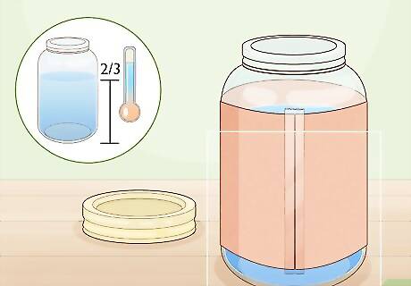 Fill the jar about ⅔ of the way full with lukewarm tap water. Let the water run for a few seconds to ensure it is clear and at the right temperature. Then, add enough water to the jar to cover the stripped portion of the stem. Make sure it won’t submerge the upper part of the stem and any leaves still on it. Bottled water is also safe to use. Avoid distilled water, since it lacks nutrients the herbs need.