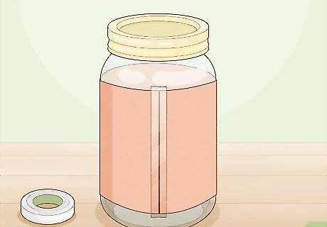 Cover the jar with paper if it is clear-colored. Wrap a few pieces of construction paper around the jar, then tape them in place. Make sure the sides are well-covered by the paper. Leave the top exposed so the herb is able to grow up from there. Since roots aren’t normally exposed to sunlight, doing this can help the herbs grow better. If you’re able to get a colored jar, you won’t need to worry about covering up. Try using tinted Mason jars, for instance. Even if you don’t cover the jar, the herb may still grow. However, keep a close eye on the water quality. The extra sunlight may cause algae to grow more quickly.