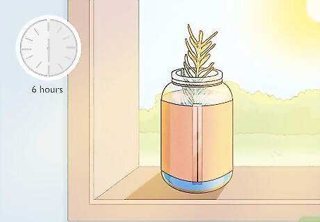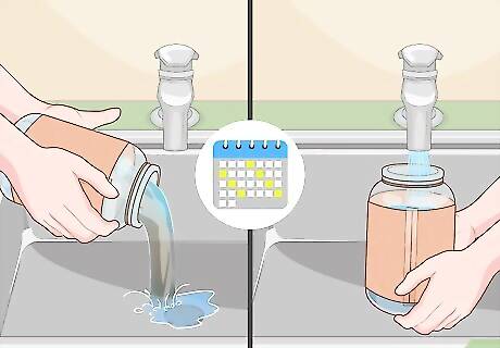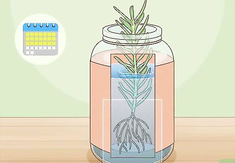Change out the water every 2 to 3 days as it becomes cloudy. Check up on the growing herb every day. Over time, the water will fill with algae, bacteria, and other contaminants. After pouring out the old water, refill the jar with clean, cold water from the tap or a bottle. Between changings, refill the jar as the water level decreases. At a minimum, change the water out at least once a week. If you let it get too dirty, it could prevent the herb from growing. Once the herb sprouts roots, the water most likely won’t need to be changed as often. The roots help keep it clean.