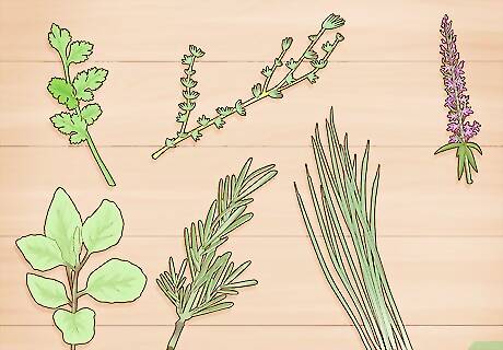 Choose water-resistant herbs that survive well in water. Most herbs grow well in water, so you could potentially create a varied herb garden. Soft-stemmed herbs like basil, oregano, mint, lemon balm, and stevia are a good place to start. You could also try growing thyme, rosemary, sage, tarragon, chives, lavender, and marjoram. Annual herbs, plants that die within a year, don’t do well in water and should be avoided. Dill, coriander, and cilantro are a couple of examples. They usually don’t have enough time to establish roots.