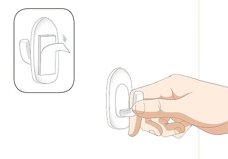 Peel the backing off of adhesive hooks and stick them directly to the wall. Press the hook into the wall for 20-30 seconds to establish a firm connection. Do your best to stick the hook on straight the first time. Adhesive hanging hooks are quite grippy, but they may lose some of their tackiness if they’re applied and removed repeatedly. Some hooks come in 2 pull-apart hook-and-loop fastener halves, which you’ll need to apply separately.