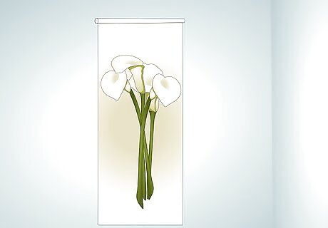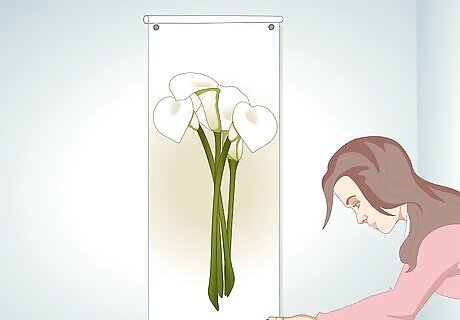 Decide where you want your piece to go on the wall. Run through a couple quick mock hangings to see where your wall scroll will look best. Remember, you want the center or most striking element of the piece to hang right around eye level. If possible, have a helper hold and adjust the scroll for you while you stand back and observe its placement.