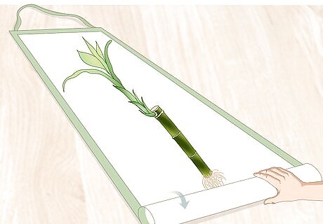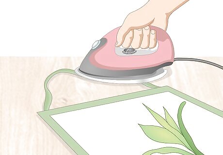 Iron your scroll's hanging ribbon to eliminate wrinkles if necessary. Upon unrolling your scroll, you may find that the ribbon used to hold it together shows signs of wrinkling, creasing, or kinking. Fortunately, this is an easy fix. Simply lay the ribbon flat against an ironing board and smooth it out with a clothes iron set to the lowest heat setting. When you're done, it will look brand new. If you're worried about damaging the ribbon, cover it with a thin layer of fabric, such as a small towel, t-shirt, or pillowcase, before running your iron over it. Mounting your scroll without first removing heavy wrinkles or creases in the ribbon could cause it to hang unevenly, or at the very least look sloppy.