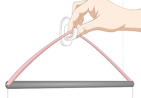 Place a pair of adhesive strips at the top and bottom of your scroll. If you're using strips as opposed to hooks, take 2 pairs out of the package and tear them apart to separate each individual strip. Apply your first set to the backside of the rods framing the top and bottom of the scroll. Then, attach the hook-and-loop fastener face of the second set to the first set before you peel the backings off. That way, all you have to do is slap the scroll onto the wall and smooth the strips down. You may even be able to get away with using only a single pair of strips at the top of an especially lightweight piece. As long as you wrap the strips neatly around the curved backside of the rods, they should be completely invisible once the scroll is on the wall.