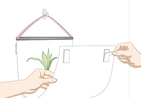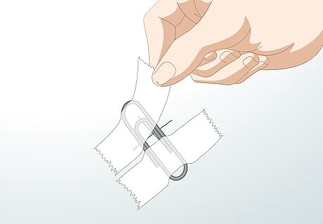 Use small magnets to secure the scroll to the wall. The magnets will keep the scroll pinned to the paper clips underneath, with no need for any nailing, sticking, or piercing. When you want to take the scroll down or move it to another location, simply pull off the magnets one-by-one and gently remove the taped paper clips. You’ll find magnets in various sizes, shapes, and colors at any craft store, hardware shop, or home improvement center. Choose a set of magnets that are small and inconspicuous to avoid drawing unnecessary attention to them. The only downside of this method is that the pressure exerted by the paper clips could result in minor wrinkling or creasing on paper scrolls. If you’re worried about keeping your scroll pristine, you may be better off trying a different method.