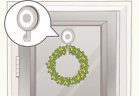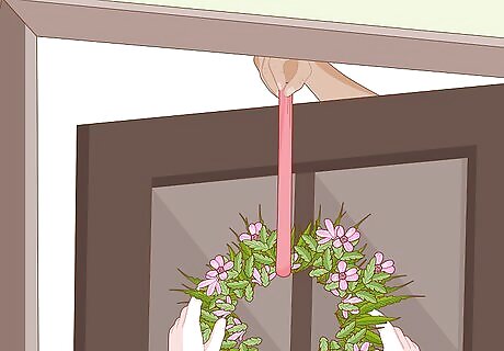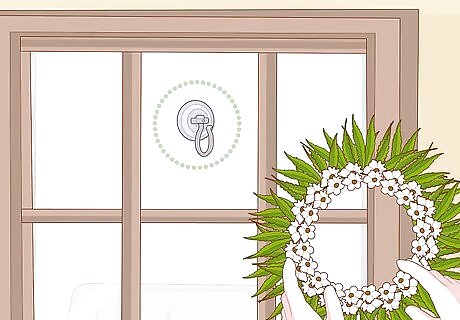 Utilize a suction cup hook to hang wreaths on glass. A clear suction cup hook is an easy way to hang a wreath on a window or other glass surface. Stick the suction cup to the glass, then hang the wreath and position the branches to hide the hook as much as possible. Make sure that the suction cup is large enough to support the weight of the wreath you want to hang. If the wreath falls down, then you should get a stronger suction cup.