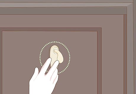 Hang a plastic adhesive hook upside down on the back side of a door. Center a plastic adhesive hook at the top of the inside of the door. Peel off the adhesive backing and stick it upside down to the door. This method works great when you don’t want to put any holes in the top of your door with nails or staples, or when your door is made of metal or another hard material that makes it impossible to hang a wreath with nails.